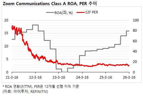 2026년 현재 회사는 'AI 우선(AI-first)' 업무 플랫폼으로의 전환을 가속화하며, 자체 AI 비서인 '줌 AI 컴패니언'을 통해 회의 요약, 이메일 작성, 워크플로우 자동화 등 생산성 도구를 강화하고 있습니다. 엔터프라이즈 부문의 매출 비중이 지속적으로 확대되는 가운데, 혁신적인 에이전틱 AI(Agentic AI) 기술을 도입하여 복잡한 비즈니스 프로세스를 자동화함으로써 마이크로소프트 등 대형 경쟁사와의 차별화를 꾀하며 안정적인 수익성을 유지하고 있습니다.